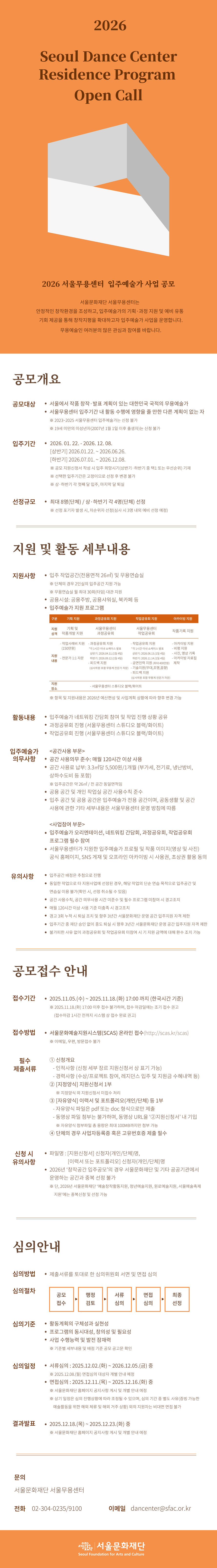 2026 서울무용센터 입주예술가 사업 정기공모 안내