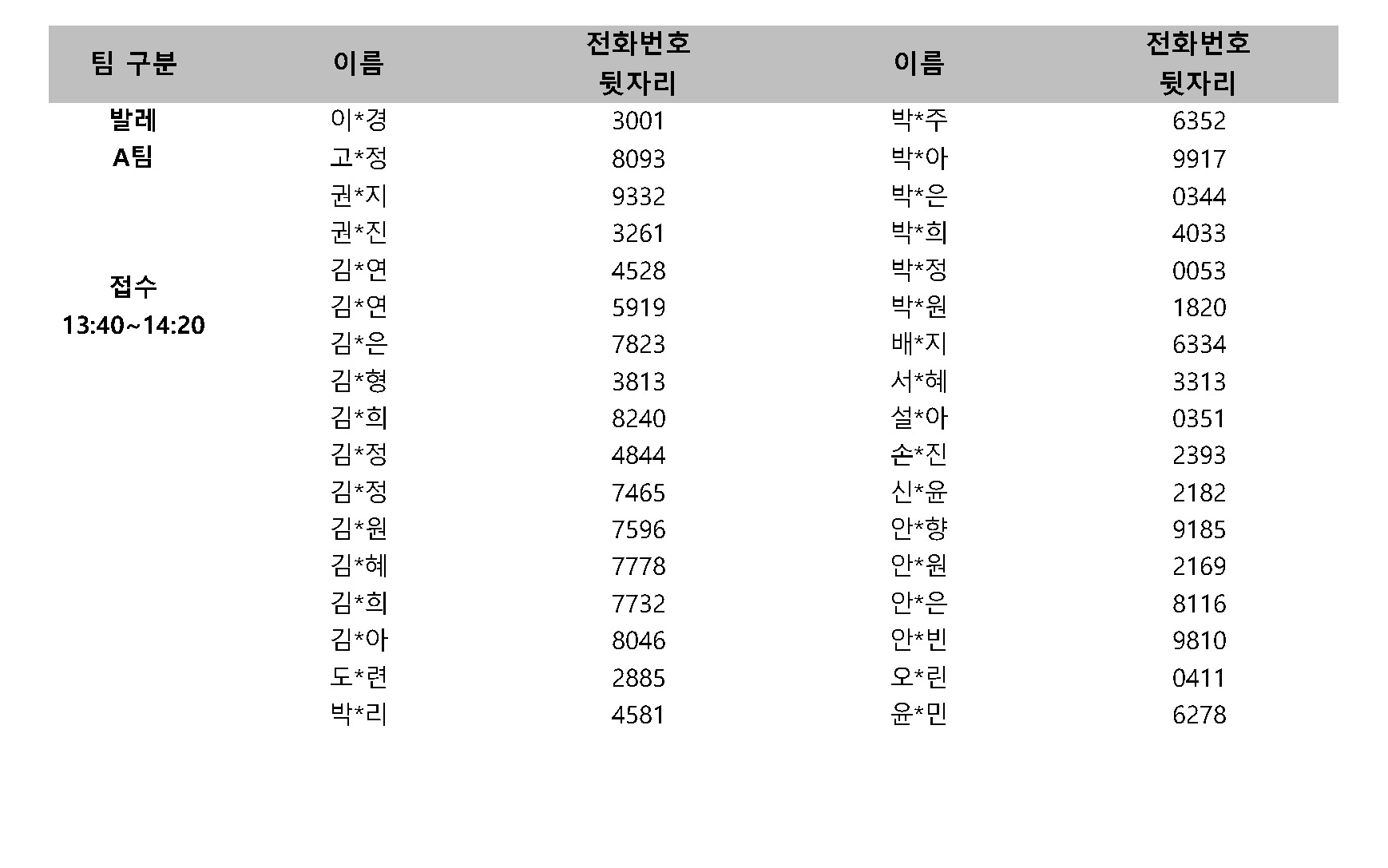 - 발레 A팀