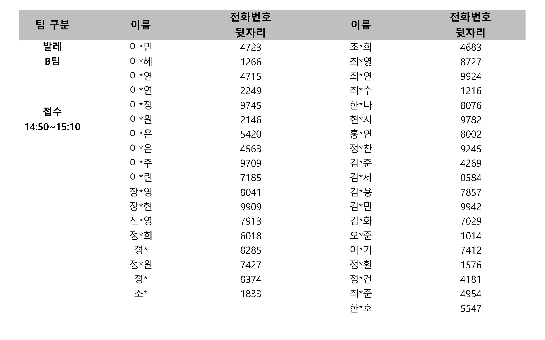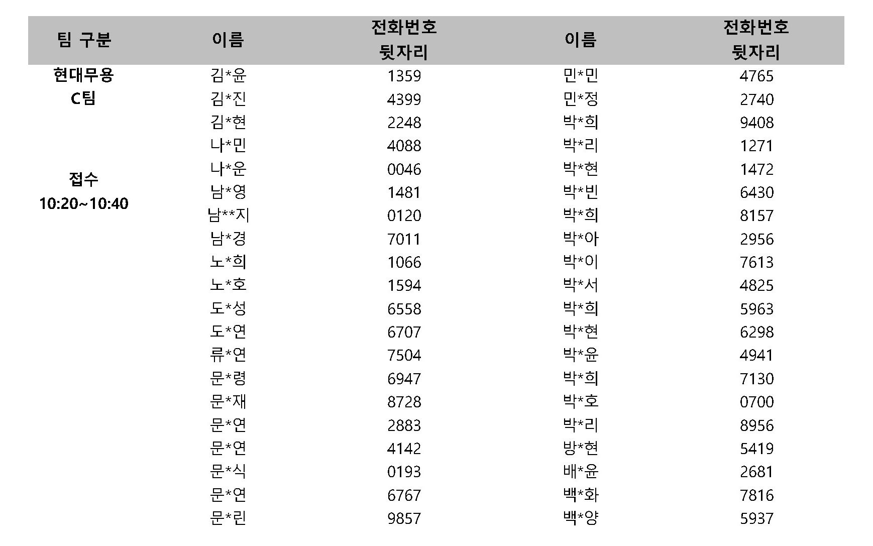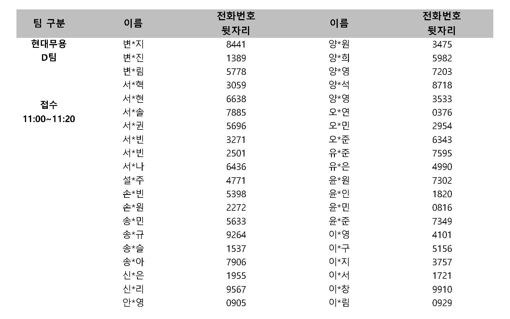 ※ 팀별로 나누어 오디션을 진행하오니 본인이 속한 팀 확인 후 해당 시간에 접수해주시기 바랍니다.