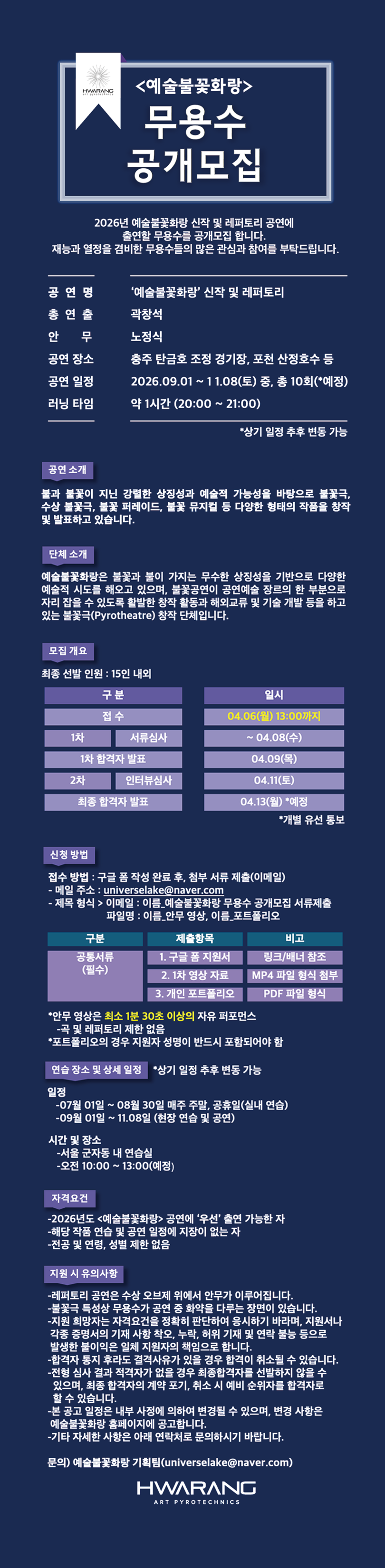 2026 <예술불꽃화랑> 신작 및 레퍼토리 무용수 공개모집