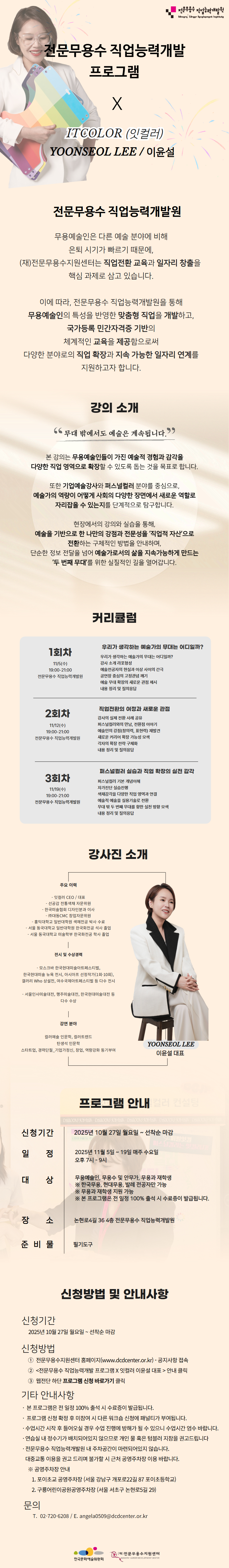 전문무용수 직업능력개발 프로그램 X 잇컬러 이윤설 대표 강의 신청 안내