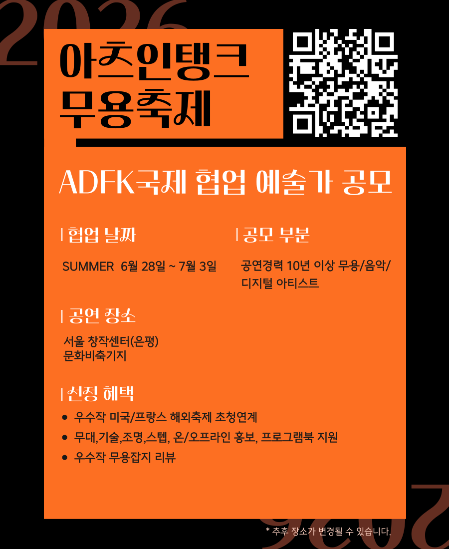 서울국제댄스페스티벌 인 탱크에서만 접수합니다.
