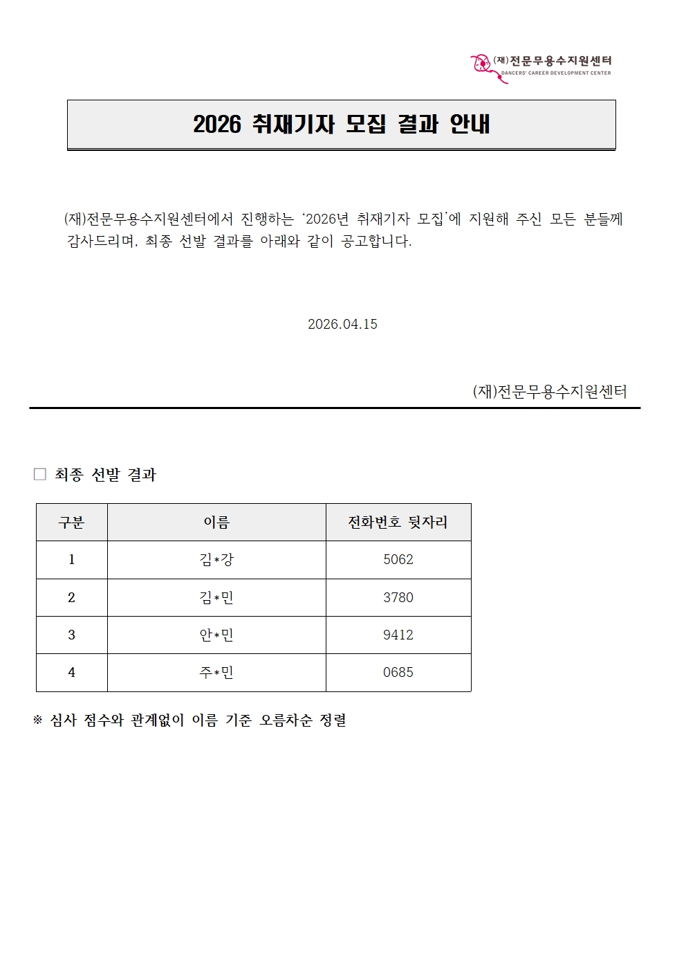 2026 취재기자 모집 결과 안내