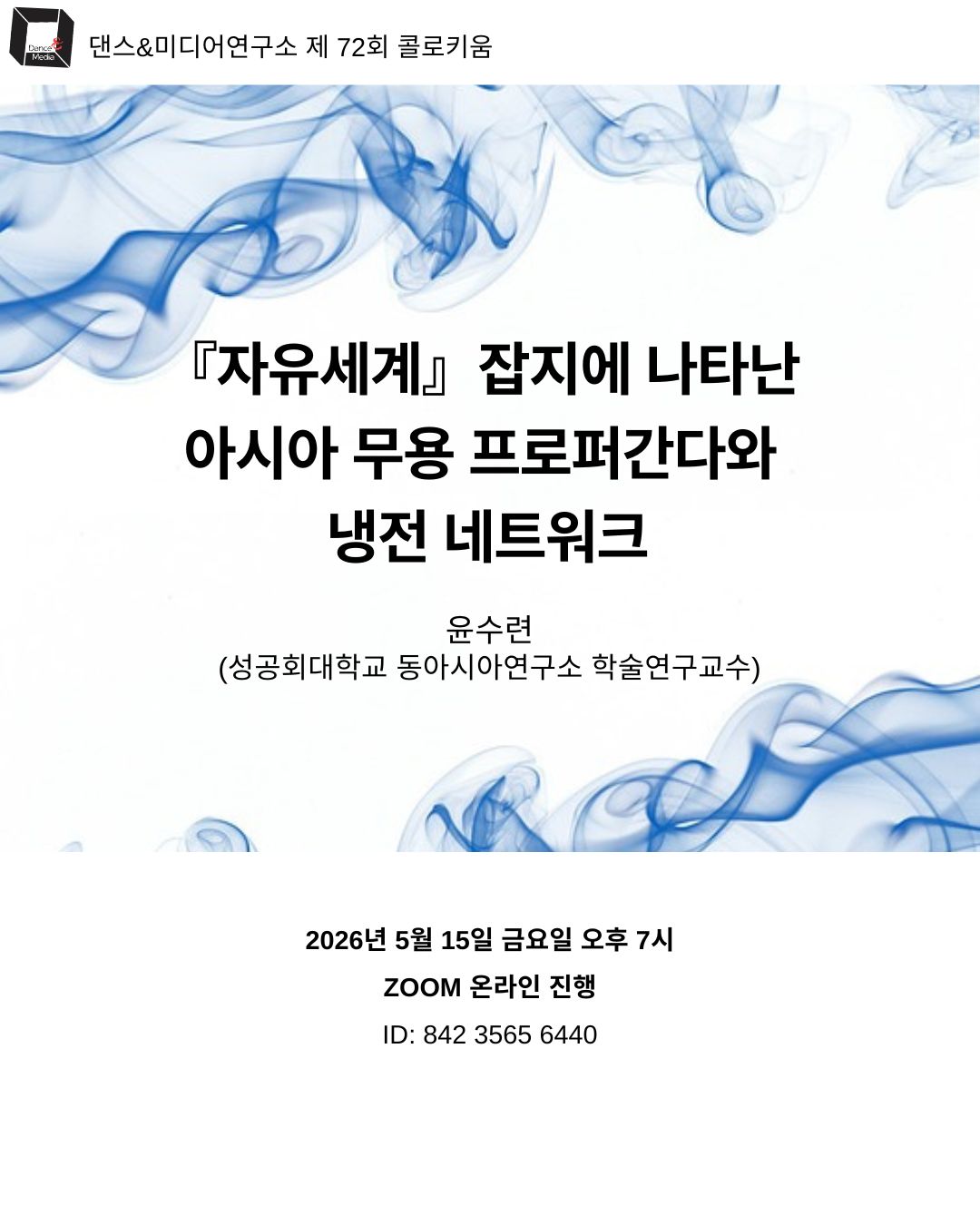 댄스&미디어연구소가 주최·주관하는 제 72회 콜로키움이 개최됩니다.