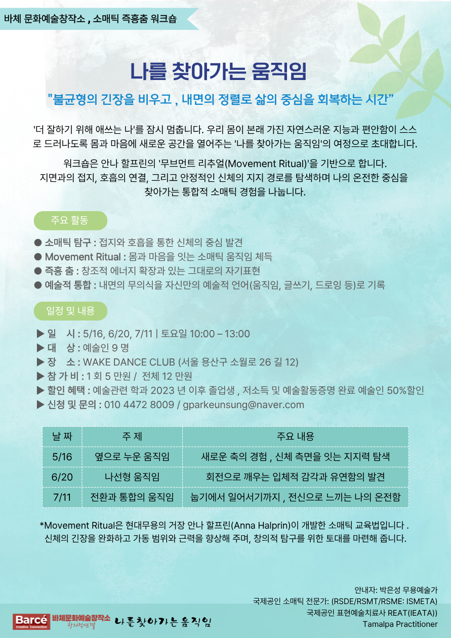 소매틱 즉흥춤 워크숍: ‘나를 찾아가는 움직임'